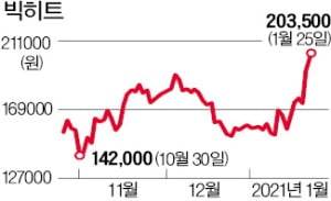 빅히트 주가가 20만원대에 오른 건 상장 다음날인 지난해 10월 16일 이후 처음이다.