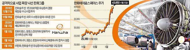 재계 7위 한화그룹의 사업 확장이 거침없다. 작년 말부터 하루가 멀다 하고 인수, 합작, 투자 관련 소식이 잇따르고 있다. 태양광·수소·우주 등 다른 기업들이 이제 첫발을 내딛는 분야에서 한화는 두세 발 앞서가고 있다. 탈석탄 시대를 예견하고 그룹 차원에서 일찌감치 시장 선점을 위한 ‘포석’을 깔아둔 덕분이다. 친환경을 내세운 미국의 조 바이든 대통령 시대를 맞아 한화의 신사업은 더욱 탄력을 받을 전망이다.