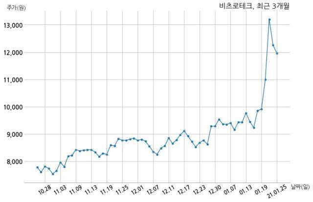 한편, 비츠로테크는 장 마감 이후 해당 기업공시를 발표했으며 오늘 종가가 11,950원, 거래량은 3,660,885주로, 직전 거래일 대비 300원(-2.45%) 하락했다.