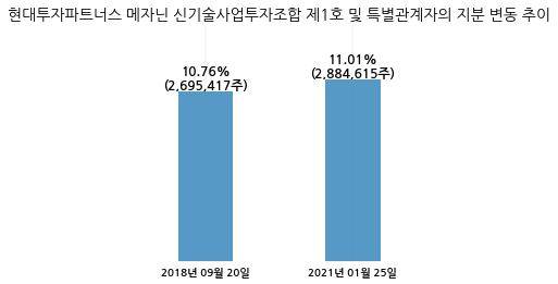 비츠로테크는 현대투자파트너스 메자닌 신기술사업투자조합 제1호 및 특별관계자의 지분율이 10.76%에서 11.01%로 변동했다고 25일 공시했다.