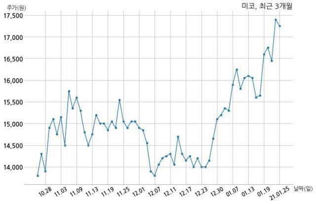 한편, 미코는 장 마감 이후 해당 기업공시를 발표했으며 오늘 종가가 17,250원, 거래량은 2,907,516주로, 직전 거래일 대비 150원(-0.86%) 하락했다.