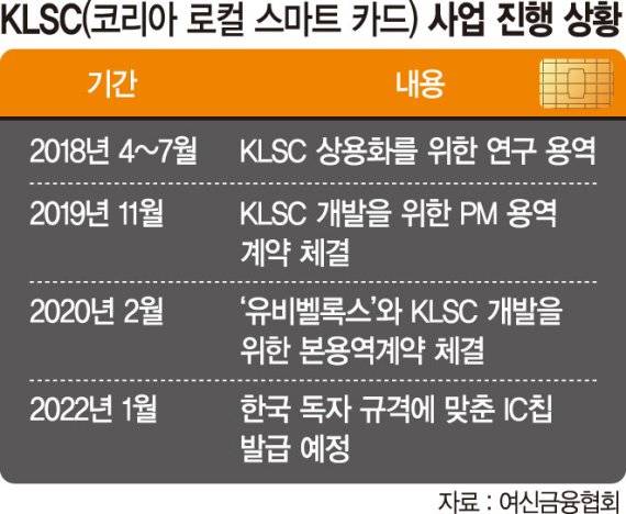여신협회와 9개 카드사는 올해 10월까지 우리나라 독자규격에 맞춘 IC칩 제작을 위한 준비를 마무리한 후 내년 초 KLSC를 시중에 내놓겠다는 구상이다.