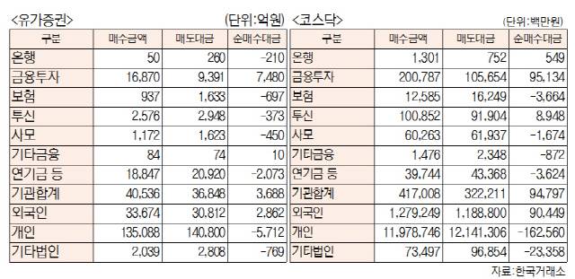 - [표]유가증권·코스닥 투자주체별 매매동향(1월 22일-최종치)
