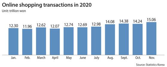Online shopping transactions last year are estimated to have reached 150 trillion won, up 11 percent from 135 trillion won in the previous year.