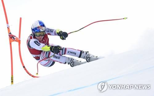 epa08963685 Alexis Pinturault of France in action during the men's Super G race of the FIS Alpine Skiing World Cup event in Kitzbuehel, Austria, 25 January 2021. EPA/CHRISTIAN BRUNA