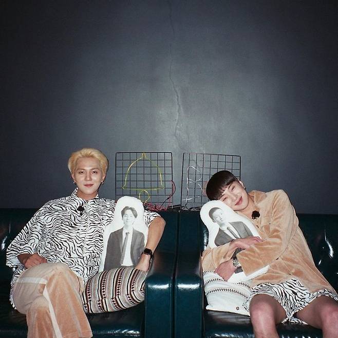 공개된 사진 속 강승윤은 송민호와 소파에 앉아 미소를 지으며 훈훈함을 자아냈다. 또 같은 위너 멤버 김진우, 이승훈 인형 쿠션이 시선을 끌었다.