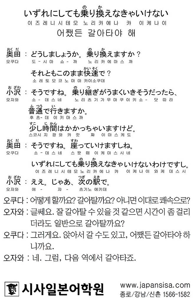 [시사일본어학원의 초단기 일본어 회화] 어쨌든 갈아타야 해
