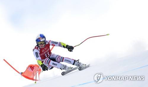 epa08963687 Alexis Pinturault of France in action during the men's Super G race of the FIS Alpine Skiing World Cup event in Kitzbuehel, Austria, 25 January 2021. EPA/CHRISTIAN BRUNA