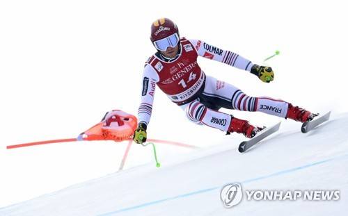epa08963697 Blaise Giezendanner of France in action during the men's Super G race of the FIS Alpine Skiing World Cup event in Kitzbuehel, Austria, 25 January 2021. EPA/CHRISTIAN BRUNA