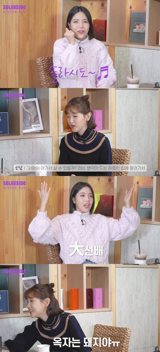 솔라는 25일 자신의 유튜브 채널 '솔라시도 solarsido'에 '그냥인터뷰 박소담ㅣ기생충, 이것까지 놀라게 한다고?'라는 제목의 영상을 게재했다.