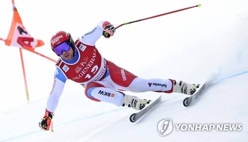 epa08963734 Beat Feuz of Switzerland in action during the men's Super G race of the FIS Alpine Skiing World Cup event in Kitzbuehel, Austria, 25 January 2021. EPA/CHRISTIAN BRUNA