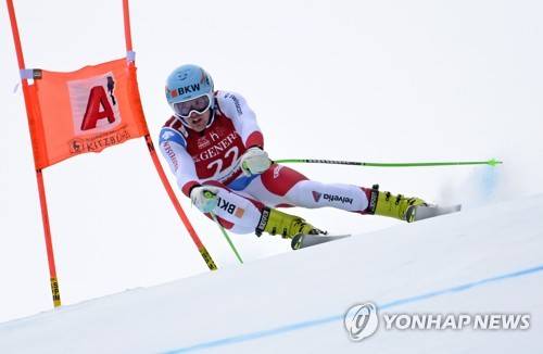 epa08963767 Stefan Rogentin of Switzerland in action during the men's Super G race of the FIS Alpine Skiing World Cup event in Kitzbuehel, Austria, 25 January 2021. EPA/CHRISTIAN BRUNA