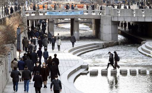 전국 대부분 지역의 낮 최고기온이 10도를 넘어서며 포근한 날씨를 보인 25일 서울 청계천 산책로에서 점심식사를 마친 직장인들이 산책을 하고 있다.