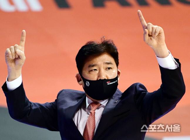 안양 KGC 김승기 감독이 25일 경기도 안양실내체육관에서 진행된 삼성과의 경기에서 작전을 전달하고있다. 2021.01.25. 김도훈기자 dica@sportsseoul.com