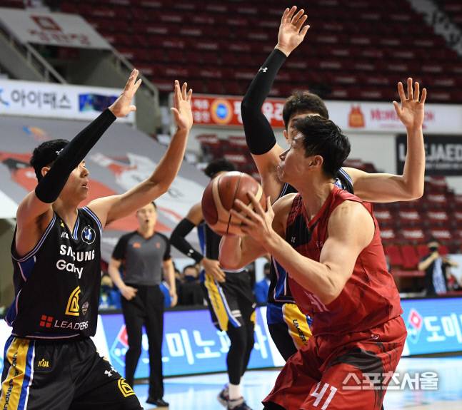 안양 KGC 오세근이 25일 경기도 안양실내체육관에서 진행된 삼성과의 경기에서 골밑슛을 노리고있다. 2021.01.25. 김도훈기자 dica@sportsseoul.com