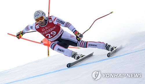 epa08963801 Adrien Theaux of France in action during the men's Super G race of the FIS Alpine Skiing World Cup event in Kitzbuehel, Austria, 25 January 2021. EPA/CHRISTIAN BRUNA