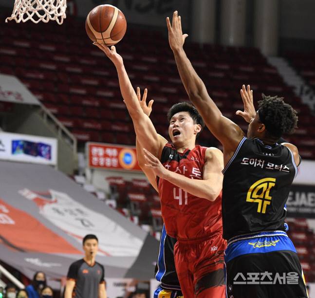 안양 KGC 오세근이 25일 경기도 안양실내체육관에서 진행된 삼성과의 경기에서 골밑슛을 시도하고있다. 2021.01.25. 김도훈기자 dica@sportsseoul.com
