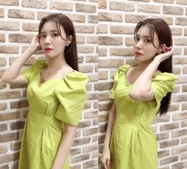 그린 톤의 원피스를 입은 정시아는 차분하게 내린 생머리로 청순미를 강조했다.