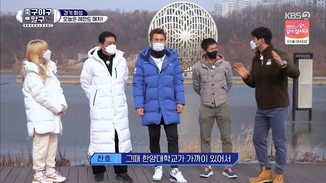 1월 25일 방송된 KBS 2TV 예능 프로그램 '축구야구말구'에서는 특별 게스트 김병지, 이종범과 경기도 화성으로 여행을 떠난 박찬호, 이영호, 승희 모습이 그려졌다.