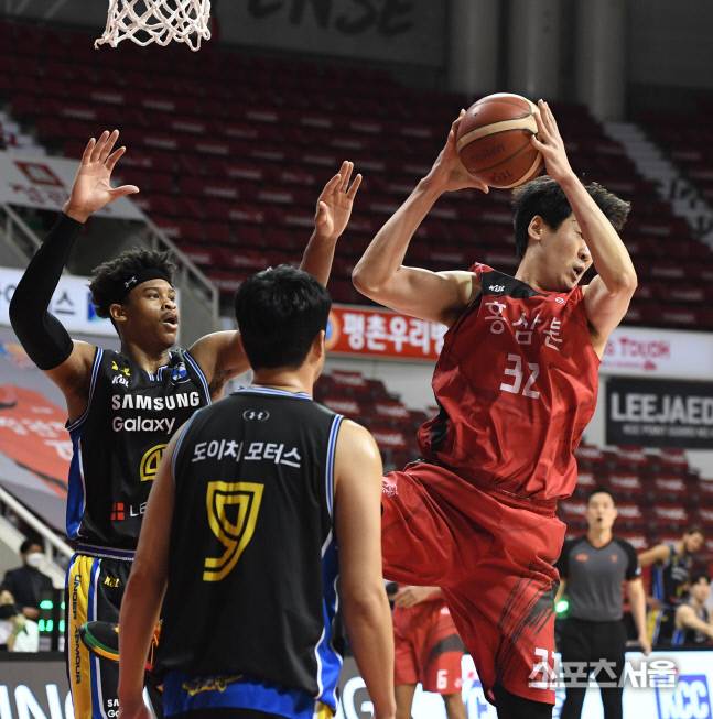 안양 KGC 김철욱이 25일 경기도 안양실내체육관에서 진행된 삼성과의 경기에서 리바운드를 따내고있다. 2021.01.25. 김도훈기자 dica@sportsseoul.com