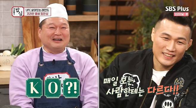 25일 방송된 SBS플러스 '강호동의 밥심'(이하 '밥심')에는 '코리안 좀비' 격투기 선수 정찬성이 출연해 이야기를 나눴다.