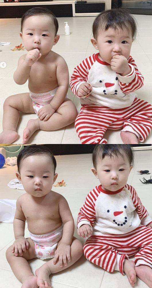 공개된 사진 속에서 쌍둥이 딸 아린과 아윤은 무언가에 집중하며 응시하고 있는 모습.
