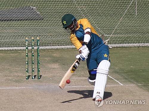 epa08964082 Pakistani cricketer Hassan Ali plays a shot during a practice session ahead of the Cricket Series with visiting South African cricket team in Karachi, Pakistan, 25 January 2021. The South African cricket squad arrived in Pakistan for their first tour consisting of two Test and three T20 matches after a 14-year break. EPA/SHAHZAIB AKBER