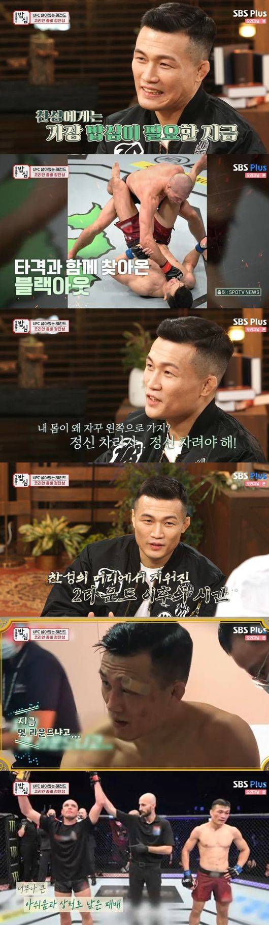 정찬성은 "이후 이상행동이 있었다고 해, 어떻게 하면 시간을 되돌릴 수 있을까 집착한다, 수십번 경기를 돌려보지만 이번엔 한번 뿐이 못 봐, 그 경기는 너무 마음이 아팠다, 힘들었던 기억"이라 떠올렸다.