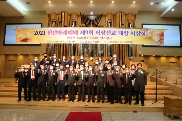 올해 40주년을 맞는 한국기독교직장선교연합회(한직선·이사장 주대준, 대표회장 진승호)는 23일 오전 남대문교회(손윤탁 목사)에서 ‘2021 신년하례예배 및 제9회 직장선교대상 시상식’을 갖고 한 단계 더 도약할 것을 다짐했다.