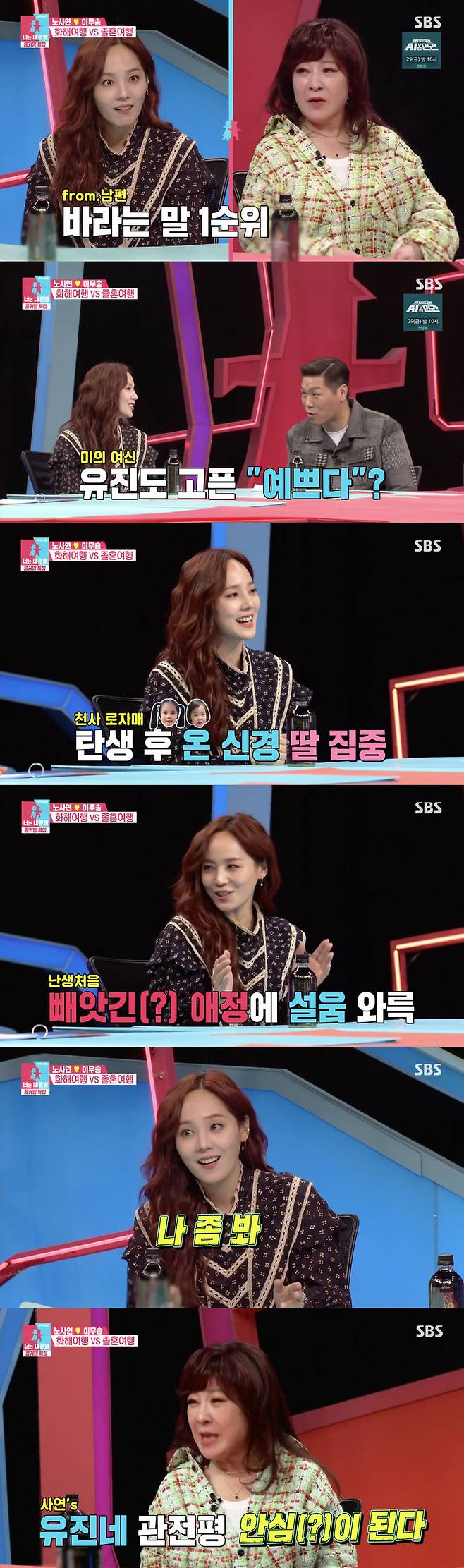 이어 그는 "노사연 씨도 남편에게 가장 듣고 싶은 말이 예쁘다는 건데 유진 씨도 예쁘다는 말이 가장 듣고 싶다고 하더라"라고 설명했다.