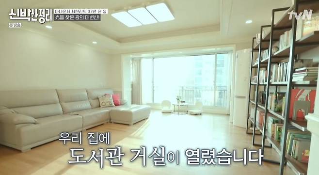 서현진의 집은 37년 된 아파트로 아들 민준 군 위주로 꾸며졌던 바. 육아의 고단함이 묻어났던 거실은 ‘신박한 정리’를 통해 도서관 거실로 재탄생됐다. 거대한 펜스를 치우고 소파와 책장만으로 한층 깔끔한 공간을 완성한 것. 박나래가 “호텔 같다”며 감탄했을 정도였다.