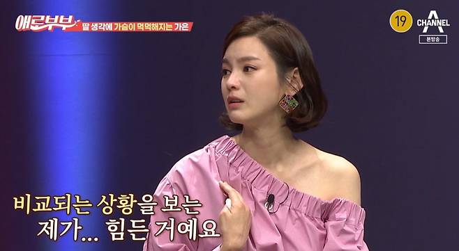정가은은 "그냥 저의 경험으로는 애기는 못 느낄 수 있는데 그냥 제가 애기랑 밖에 놀러 나갔을 때 엄마랑 아빠랑 애기랑 있는 가정을 보면 사실 우리 애기는 별 생각을 안할 수 있는데 비교 되는 상황을 보는 제가 힘든 거다. ‘나는 왜 아빠가 없지?’라는 생각을 하지 않을까라는 마음이 든다”고 딸 생각에 가슴이 먹먹해지는 모습으로 눈물을 보였다.