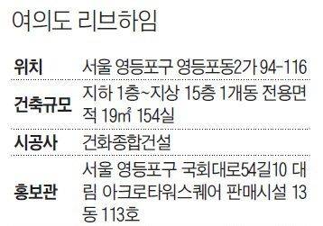 분양 회사 관계자는 “여의도 리브하임은 각 금융기관 본사와 KBS 방송국, 국회의사당 등 모여 있는 여의도 업무지구와 가까워 1인 가구 수요가 풍부하다”며 “아직 무주택자라면 아파트 청약 시 무주택 자격을 유지할 수 있고, 강남 등 타 지역 대비 투자 금액도 적은 등 장점이 있어 관심을 가지는 투자자들이 많다”고 말했다. 오피스텔 홍보관은 서울시 영등포구 국회대로54길 10 대림 아크로타워스퀘어 판매 시설 13동 113호에 있다.
