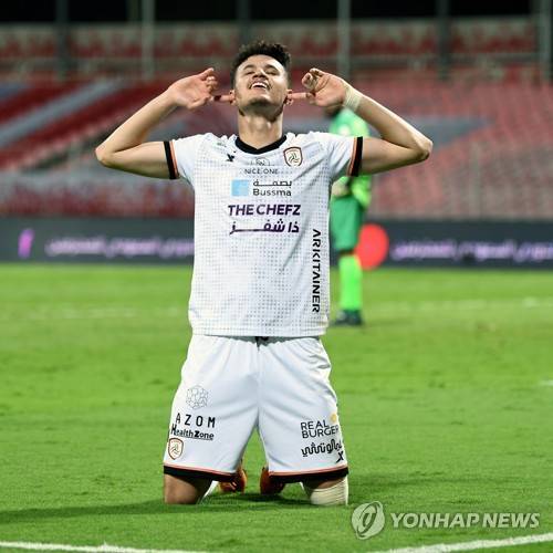 epa08965081 Al-Shabab's player Abdullah Alhamddan celebrates after scoring a goal during the Saudi Professional League soccer match between Al-Wehda and Al-Shabab at King Abdulaziz Stadium, Mecca, Saudi Arabia, 25 January 2021. EPA/STR