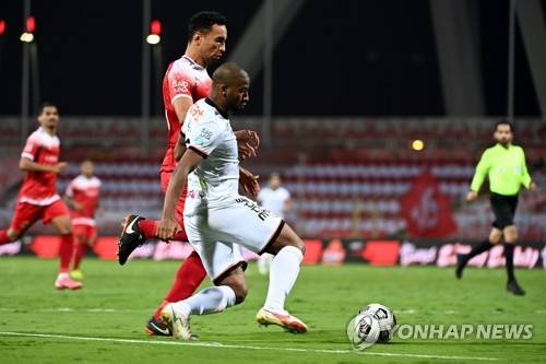 epa08965092 Al-Wehda's player Pedro Henrique (back) in action against Al-Shabab's Seba (front) during the Saudi Professional League soccer match between Al-Wehda and Al-Shabab at King Abdulaziz Stadium, Mecca, Saudi Arabia, 25 January 2021. EPA/STR