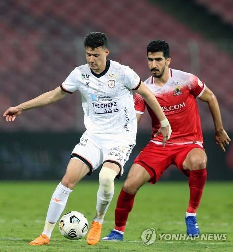 epa08965094 Al-Wehda's player Abdullah Al Hafith (R) in action against Al-Shabab's Abdullah Alhamddan (L) during the Saudi Professional League soccer match between Al-Wehda and Al-Shabab at King Abdulaziz Stadium, Mecca, Saudi Arabia, 25 January 2021. EPA/STR