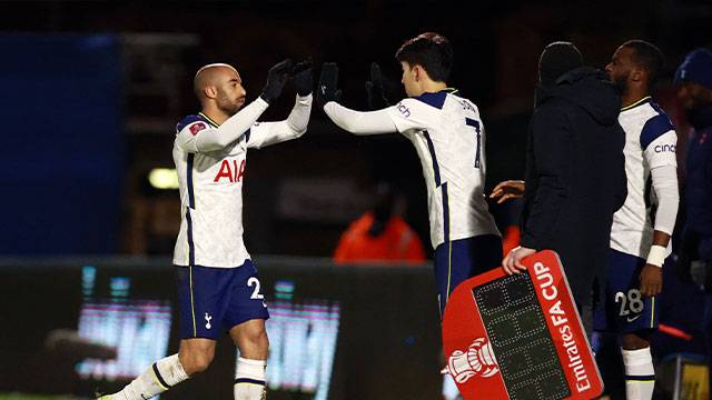 손흥민은 26일 위컴과의 잉글랜드 축구협회(FA)컵 32강전에서 후반 22분 교체 투입돼, 은돔벨레의 3번째 골을 이끌어내는 패스를 성공시켰다.