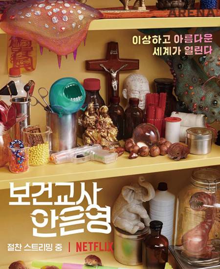 비록 넷플릭스와 처음 작업했던 단편 영화 <러브 세트>가 끔찍하긴 했지만, 평상시 이경미 감독이 보여준 독특한 유머와 캐릭터에 호감이 있었다. 사회에서 환영받지 못하는 특이한 인물들을 밉지 않게 그려내고 이들이 연대하는 이야기에 꾸준한 관심을 보내온 연출자였다. 그 작품 세계와 비슷한 기질이 보이는 소설의 드라마 버전을 연출한다는 소식을 들었을 때 어울리는 옷을 입었다고 생각했다. 오컬트 히어로적 요소가 있는 <보건교사 안은영>이 그것이다. 하지만 예상과 달리 최종 결과물은 일반적인 시즌제 드라마와 거리가 먼 형태였다. 딜레마가 생기는 순간이다. 이번에도 감독의 매력으로 이해해줘야 하는가?