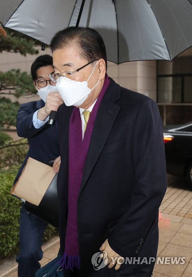 (서울=연합뉴스) 이정훈 기자 = 정의용 외교부 장관 후보자가 26일 오전 서울 종로구 외교부 청사 인근 사무실로 출근하고 있다. 2021.1.26