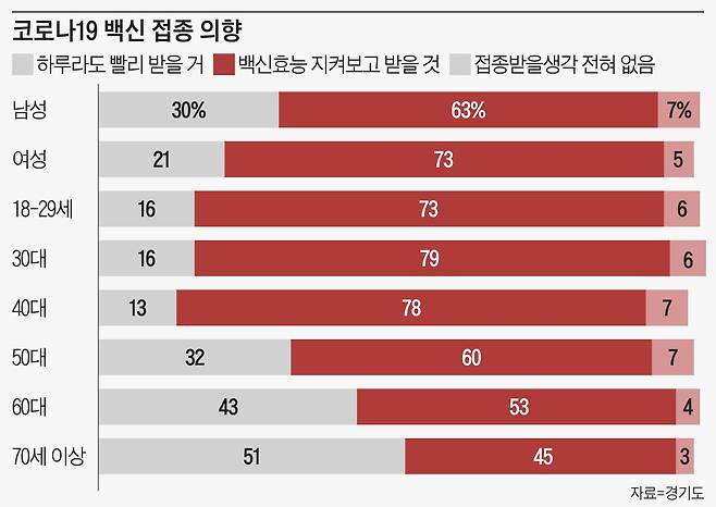 경기도민 68%가 "코로나 백신 효능 지켜보고 맞겠다"