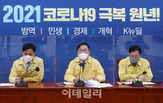 [이데일리 노진환 기자] 김태년 더불어민주당 원내대표가 26일 오전 국회에서 열린 원내대책회의에서 모두발언을 하고 있다.