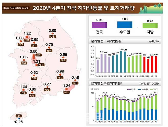 지난해 아파트값이 37.05%(한국부동산원 조사) 올라 전국 최고치를 찍은 세종시는 땅값도 10.62% 오르는 기염을 토했다.