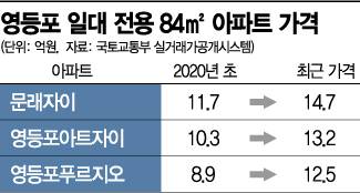 영등포아트자이 같은 면적 역시 이달 6일 13억2000만원을 기록하며 신고가를 경신했다. 2019년말(10억3000만원) 대비 2억9000만원 오른 것이다.