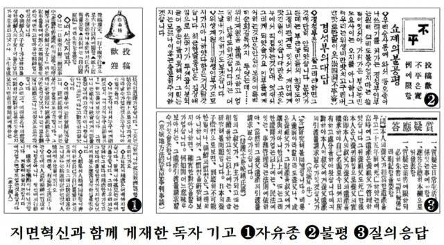 과거 3면에 있던 사회기사와 4면의 지방기사는 2면으로 당겼고 종전에 2면 일부를 채웠던 경제기사에는 4면 전체를 내줬습니다. 경제면을 늘리는 한편 정경부를 정치부와 경제부로 나눴죠. 경제의 중요성을 감안한 조직 개편이었죠. 지면 변화와 더불어 눈에 띄는 특징은 독자들이 만드는 지면을 크게 늘린 점이었습니다. 1면에 ‘자유종’과 ‘독자만화’를 실었고 2면에는 ‘불평’을, 3면에는 ‘질의응답’을 각각 배치했죠. 모두 독자들의 원고를 받아 만들었습니다. ‘자유종’과 ‘불평’ ‘질의응답’은 지령 100호 무렵에 도입했던 형식을 지령 1000호를 넘은 이 시점에 새롭게 다듬어 내놓았죠.