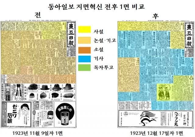 창간 때부터 민중의 표현기관을 자임한 동아일보는 시대의 동향에 발맞춰 지면을 대대적으로 개편했습니다. 1923년 12월 1일자 1면 사설로 이 사실을 알렸죠. 가장 먼저 눈에 띄는 것은 1면의 변화였습니다. 지면혁신 전까지 동아일보 1면은 주장과 의견만 담았습니다. 사설과 논설 기고 외에는 싣지 않았거든요. 1910년 나라를 빼앗긴 뒤 할 말이 있어도 말할 곳이 없던 세월만 10년이었습니다. 1920년 동아일보가 창간돼 표현수단이 생기자 1면은 우리 목소리를 싣는 고정면이 됐죠. 그러던 것이 약 4년 만에 바뀐 겁니다. 사설은 놓아두고 논설이나 기고는 가급적 뒤로 돌리는 대신 기사를 실었죠. 그것도 외신기사를요. 세계의 움직임을 비중 있게 전달하려는 의도였죠.