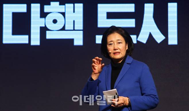 [이데일리 노진환 기자] 박영선 전 중소벤처기업부 장관이 26일 오전 서울 여의도 중소기업중앙회관에서 서울시장 출마를 선언하고 있다.