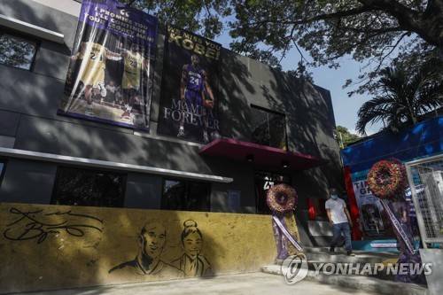epa08965709 Artwork and posters depicting the late basketball player Kobe Bryant and his late daughter, Gianna are displayed at a basketball facility dubbed 'House of Kobe' during a ceremony marking their first death anniversary in Valenzuela City, Metro Manila, Philippines, 26 January 2021. Bryant and his 13-year-old daughter were killed along with seven others in a helicopter crash in Calabasas, California, USA on 26 January 2020. EPA/ROLEX DELA PENA
