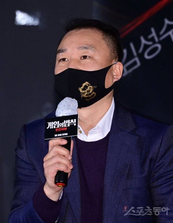 감독 이수성이 26일 서울 광진구 자양동 롯데시네마 건대입구점에서 열린 영화 ‘게임의 법칙: 인간사냥’ 언론시사회에서 인사말을 하고 있다.