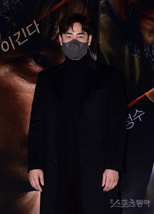 배우 김성수가 26일 서울 광진구 자양동 롯데시네마 건대입구점에서 열린 영화 ‘게임의 법칙: 인간사냥’ 언론시사회에서 포즈를 취하고 있다.