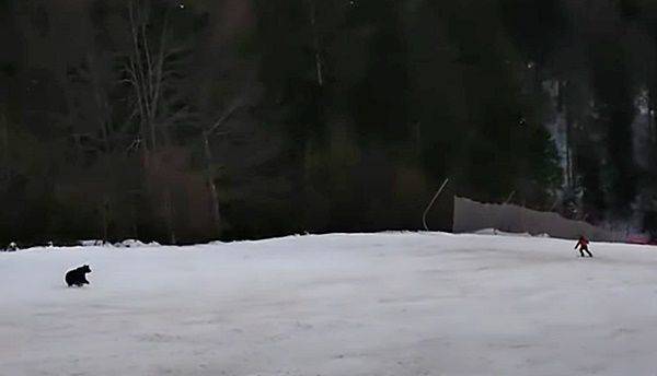 사건 당시 스키장 리프트를 타고 산 정상으로 올라가던 사람들은 내리막길을 빠르게 내달리는 검은색 곰을 발견하고 깜짝 놀랐습니다. 스키를 타고 앞서가던 남성이 바로 뒤에서 무슨 일이 벌어지고 있는지 알아차리지 못한 채, 둘 사이 거리는 좁혀져 갔습니다.